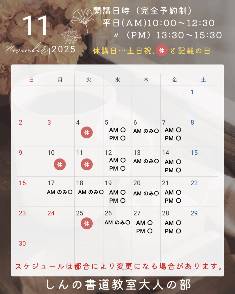 ☆2025年11月大人の部スケジュール☆