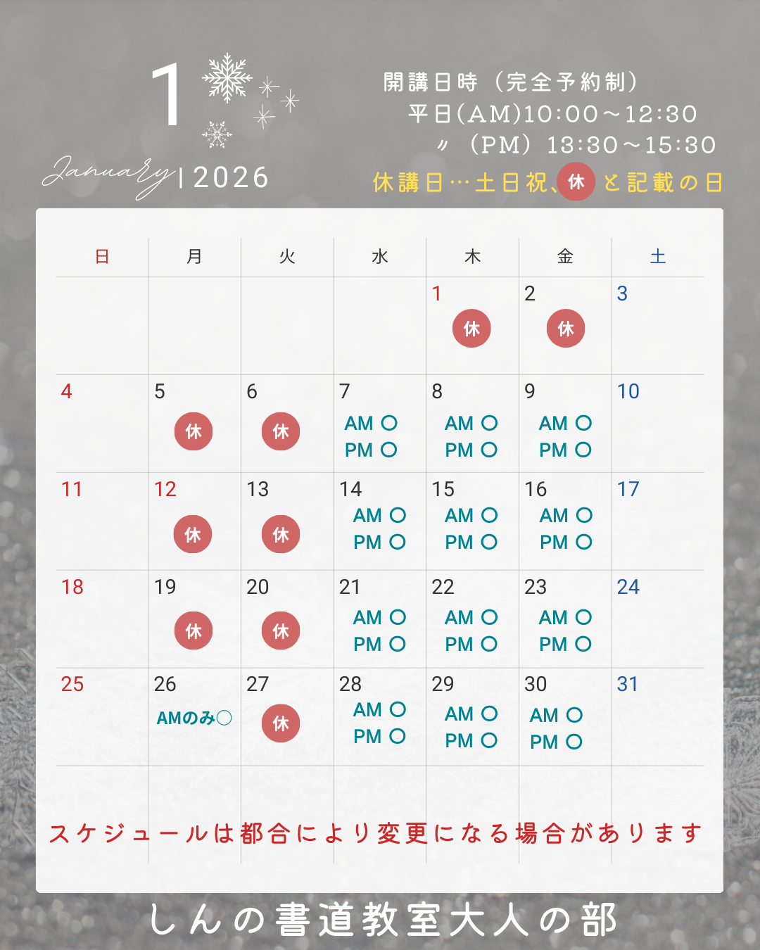 ☆2025年12月・2026年1月大人の部スケジュール☆