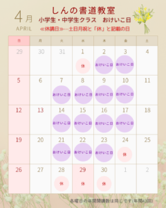 お知らせ2026年3月25日4月・5月のおけいこ日