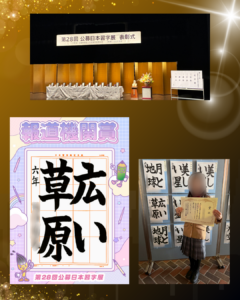 12月号「書き初め競書大会」の作品に加え、小・中・高校生のハガキ作品、大人の生徒さんの作品も展示します。